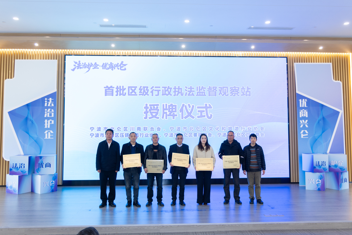 记者了解到,北仑区在10家行业协会、商会设立了行政执法监督观察站,在12家企业设立了行政执法监督观察点。现场授牌的包括川商联合会、压铸模具行业协会,以及海天、冠保码头、盛威等企业。