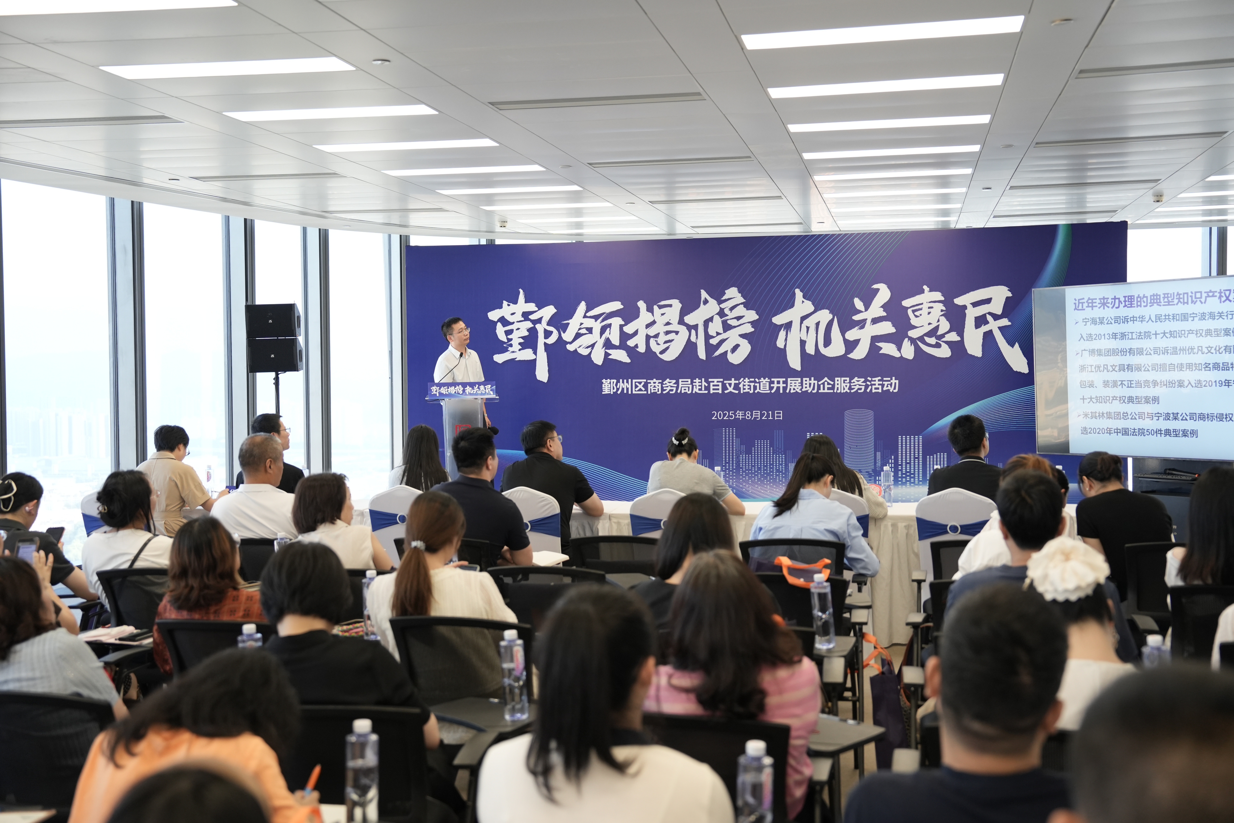 近日,“鄞领揭榜・机关惠民”助企服务活动在宁波塔8楼红客厅举行,这是鄞州区外贸行业法律服务团首次亮相开展外贸领域助企活动。服务团第四分团携手百丈司法所、后塘社区“红客厅服务站”,精准收集企业需求,为楼宇企业送上政策与法律“双重保障”,有效破解楼宇企业发展难题。
