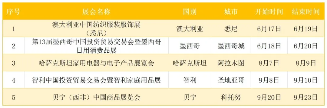 境外重点新兴市场展会