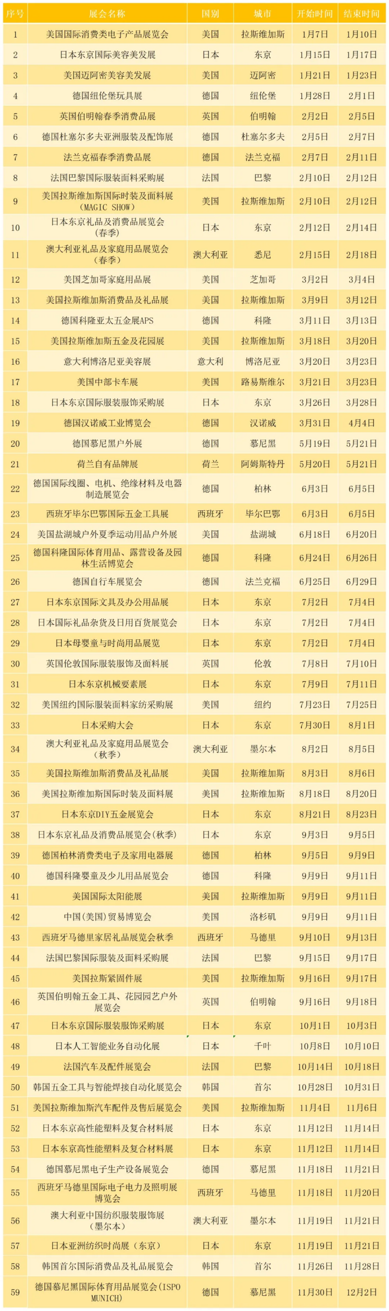 境外重点传统市场展会